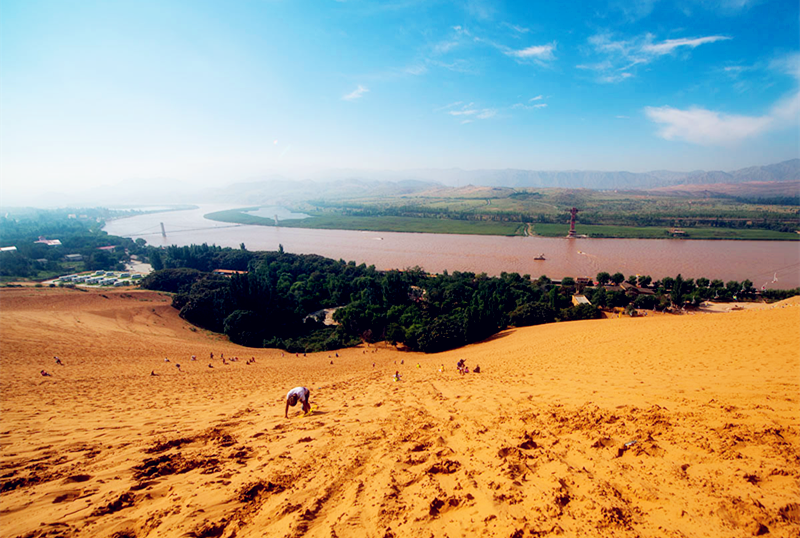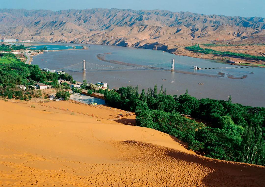 黄河是中华民族的母亲河,宁夏段黄河蜿蜒曲折,景色壮观,最著名的要数宁夏中卫市的沙坡头,沙坡头地处黄河与沙漠的交汇处,是黄河奇观的最佳代表,你可以欣赏到壮观的黄河大峡谷、沙丘、沙漠等自然景观。